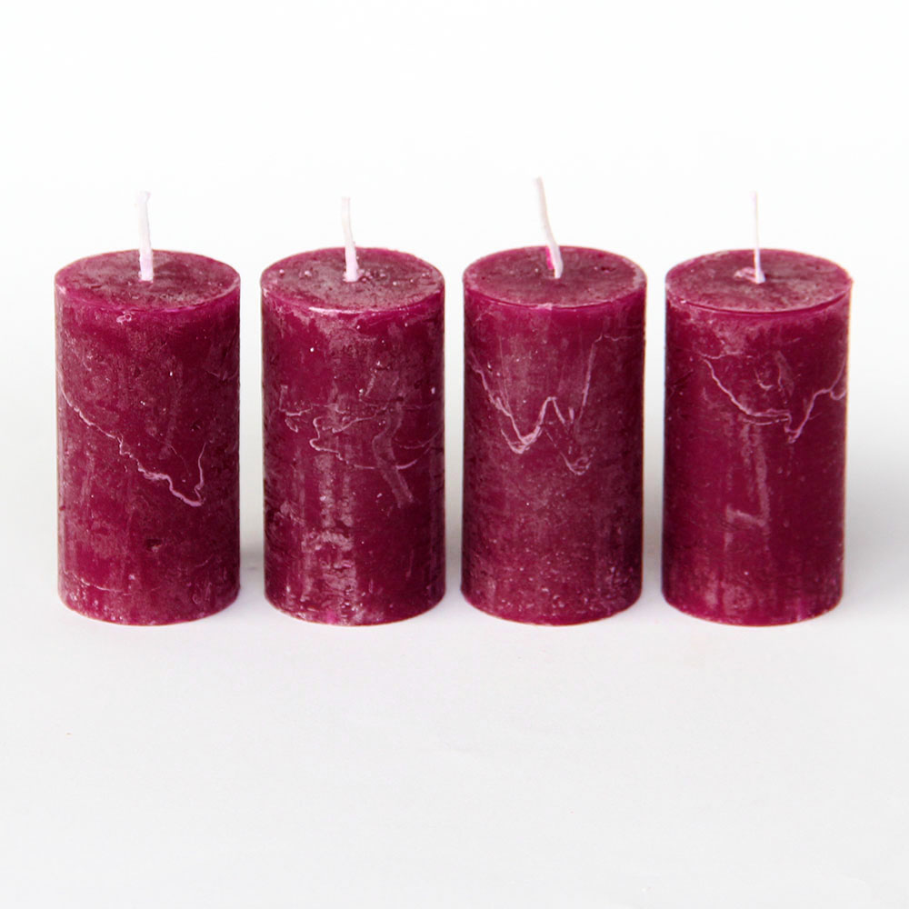 Adventi gyertya rusztikus, 40x75mm, 4db LILA-RÓZSASZÍN