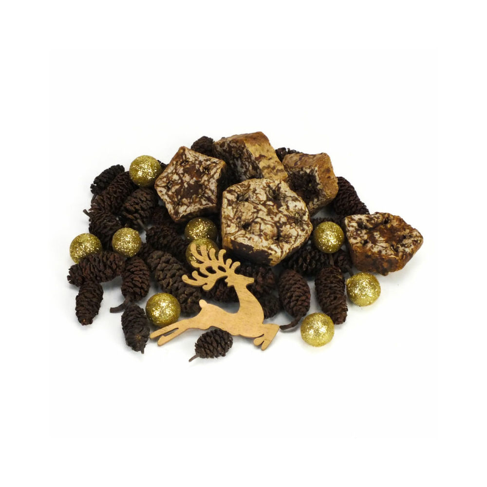 Karácsony témajú csomag: tobozok, csillagok és egyéb kisebb dekor termés található a csomagban. Kiváló lehet készítmények dekorálásához, otthoni díszek kiegészítéséhez.