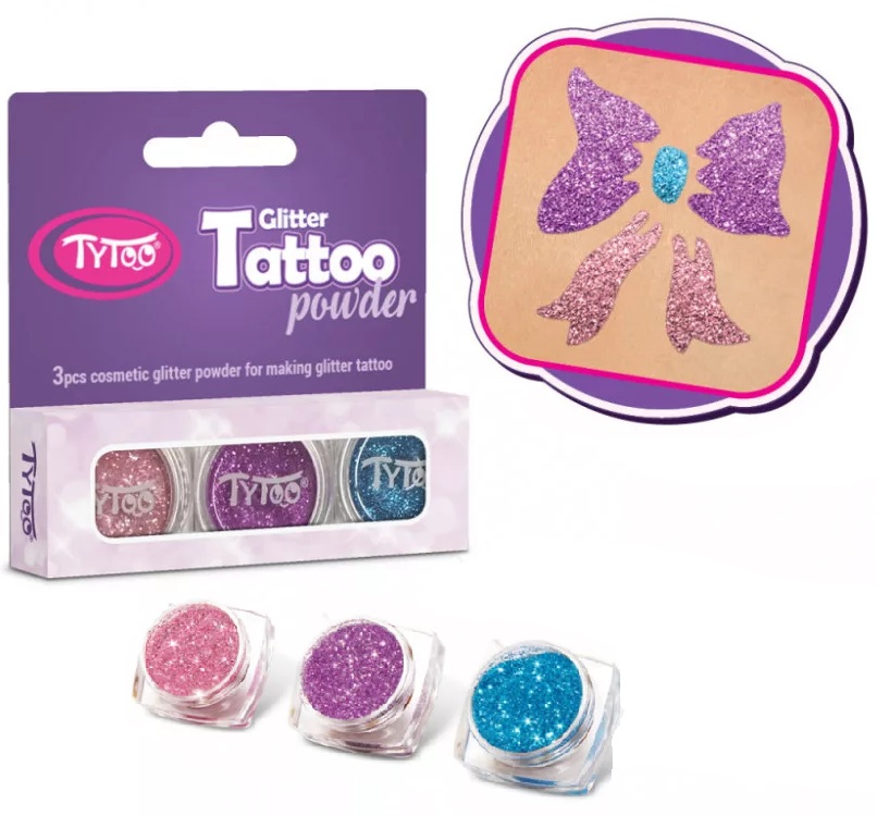 Az apró szemcsék hatszögletűek, ezért jól illeszkednek egymáshoz a festés során, és így lesz szép, és hosszan tartó a csillámtetoválásod.