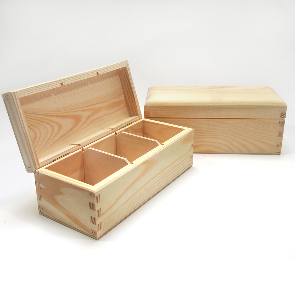 Fa teafiltertartó doboz, 3 rekeszes, 21cm