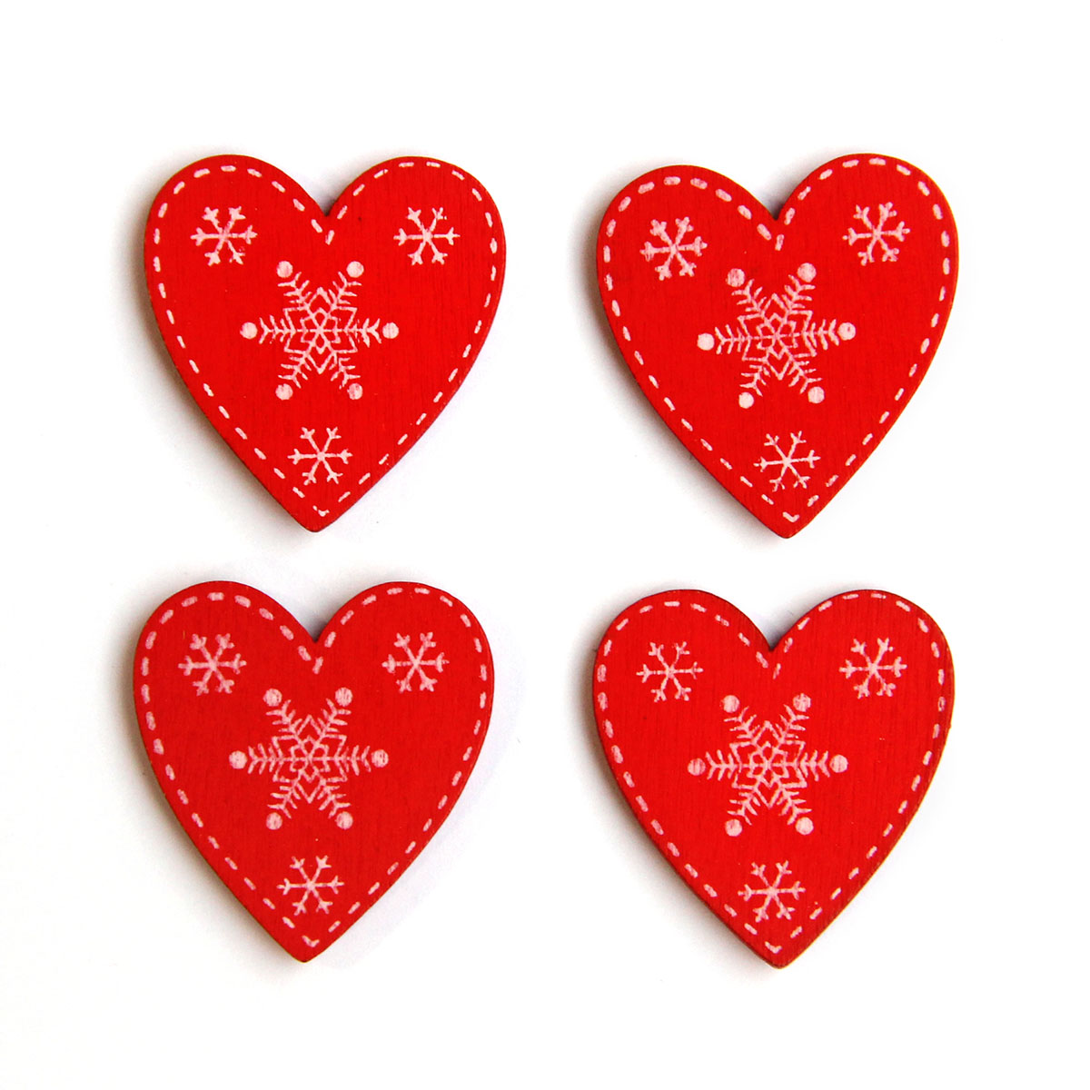 Piros színű szívek, fehér hópehely mintával