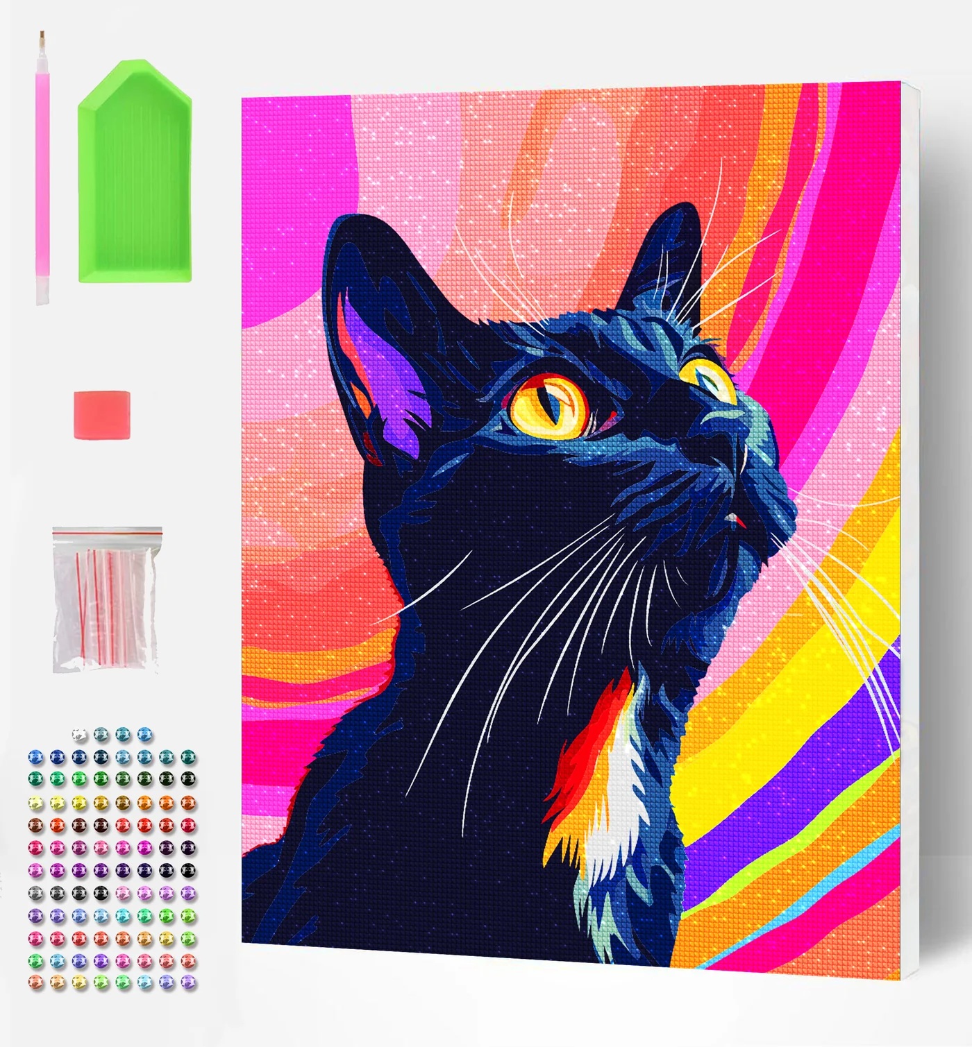 Gyémántszemes festmény 40x30 cm, Fekete macska