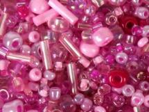 Opak, festett, és ezüstközepű stb... gyöngyök, rózsaszín árnyalatban