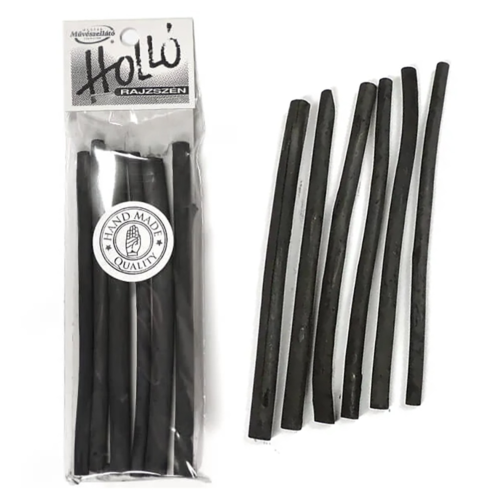 A Holló rajzszén természetes mogyoróágakból hagyományos égetési eljárással készül