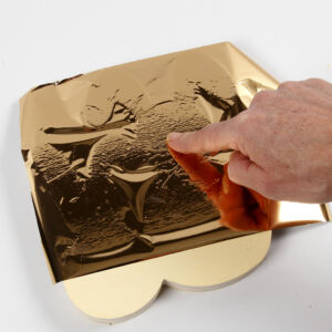Helyezd a nyuszikat az ezüst oldalára az arany dekorfóliának.