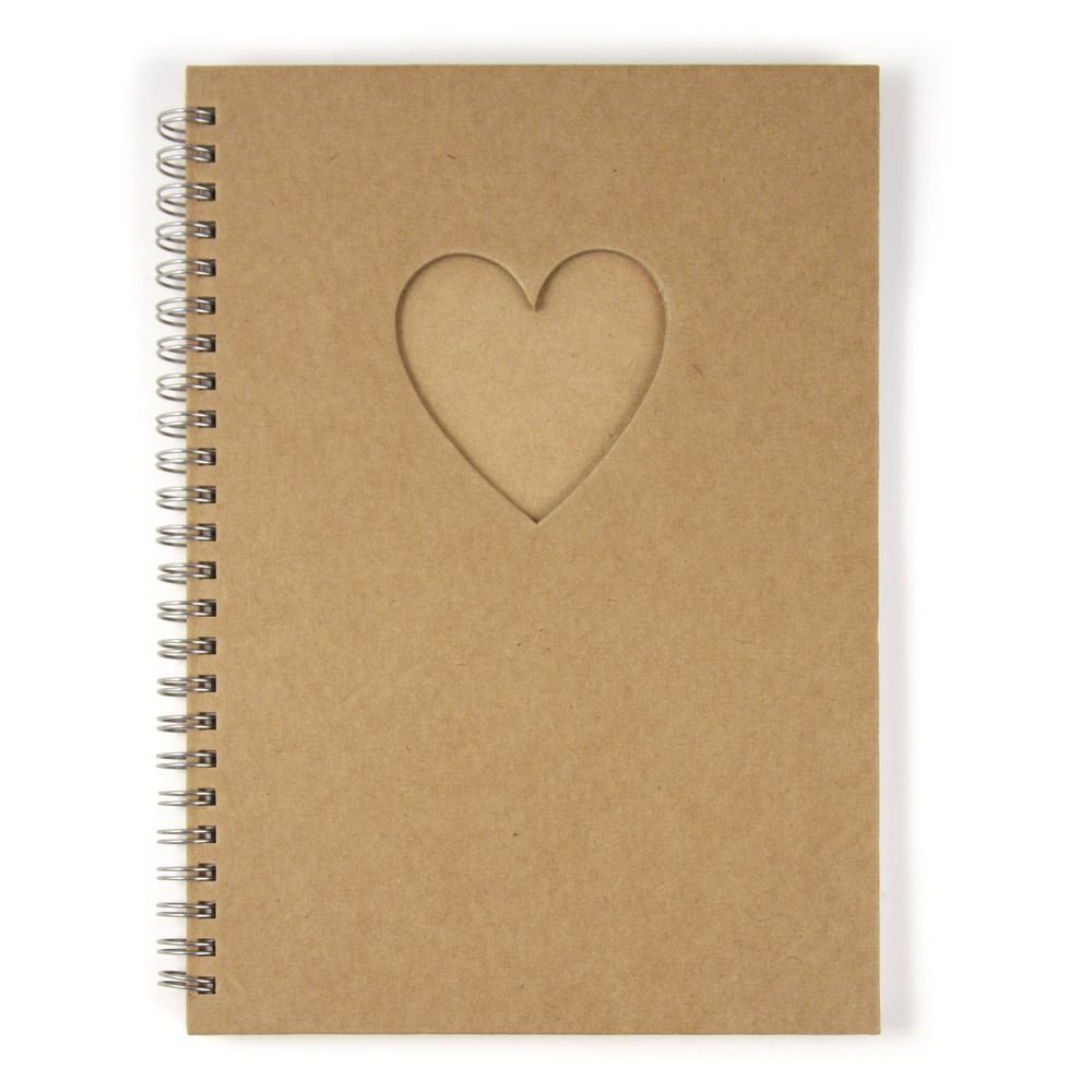 60 lapos, A/5 méretű jegyzetfüzet szív alakú nyílással. A borító szabadon dekorálható pl. scrapbook technikával. A belső lapok fehérek, lapsúly 70 g/m2.