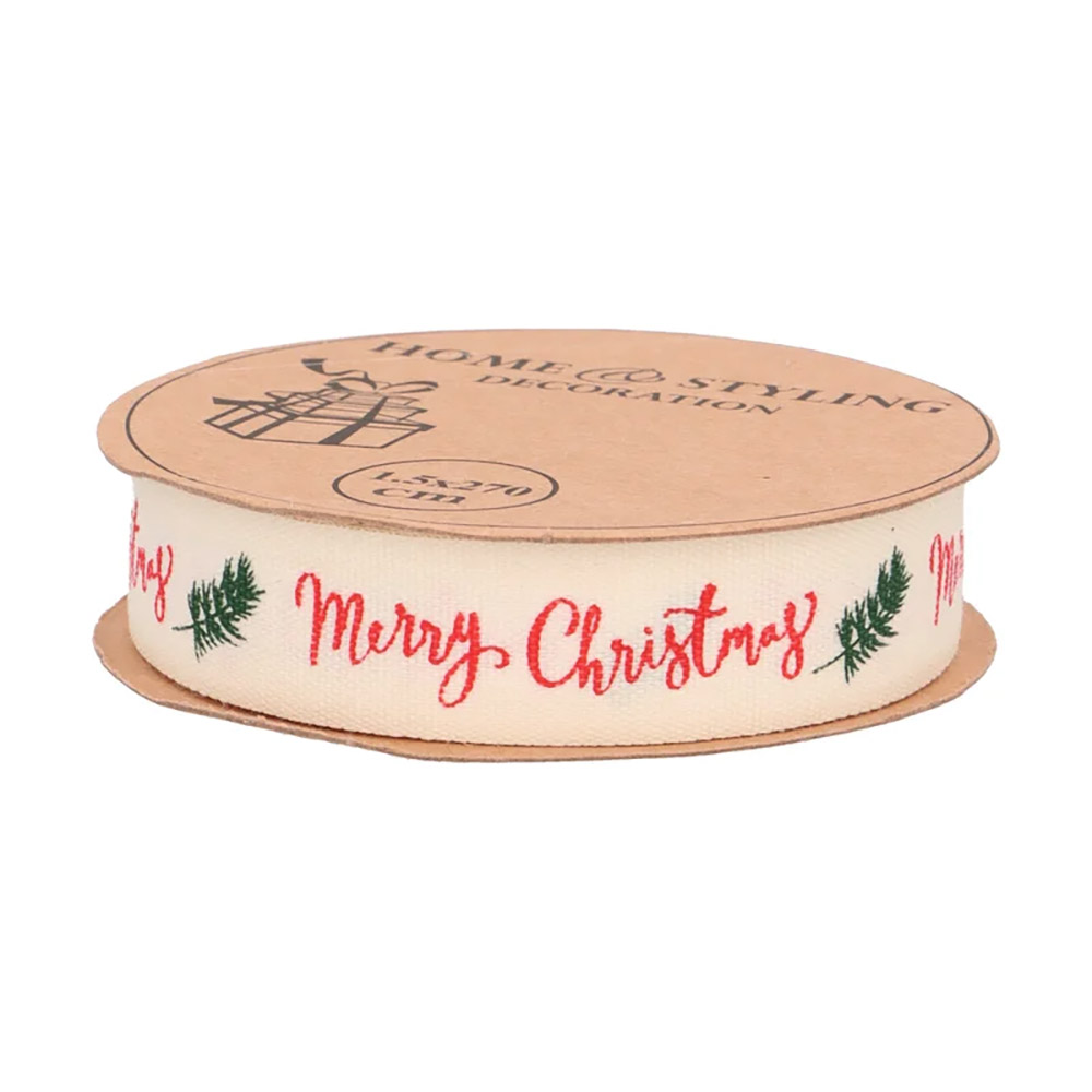Karácsonyi szalag natúr, piros és zöld mintával, 1,5cmx2,7m C