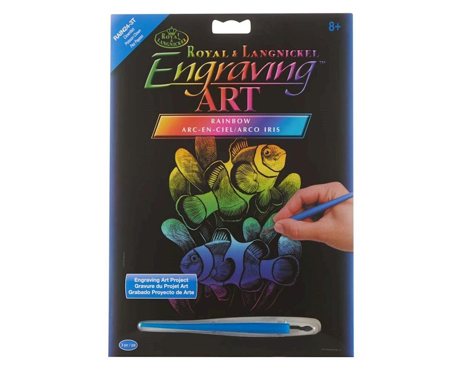 A sötét kartonba karcolt minta, szivárványosan csillog, ha elkészült a kép.