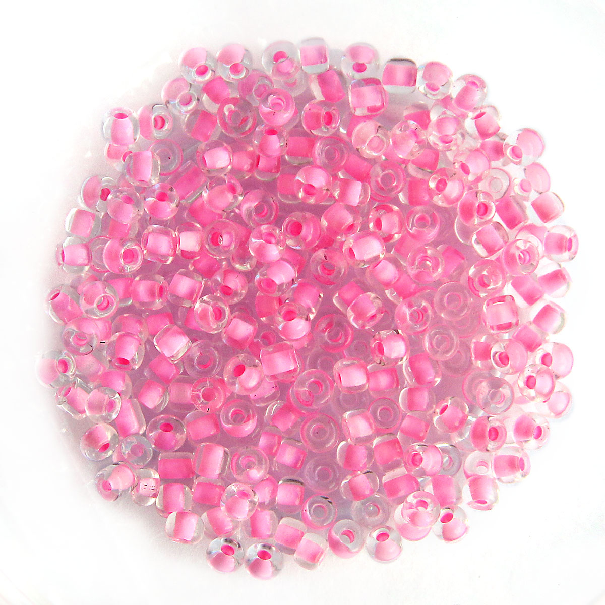 Kásagyöngy festett közepű, Rózsaszín-kristály 4mm 15g/cs