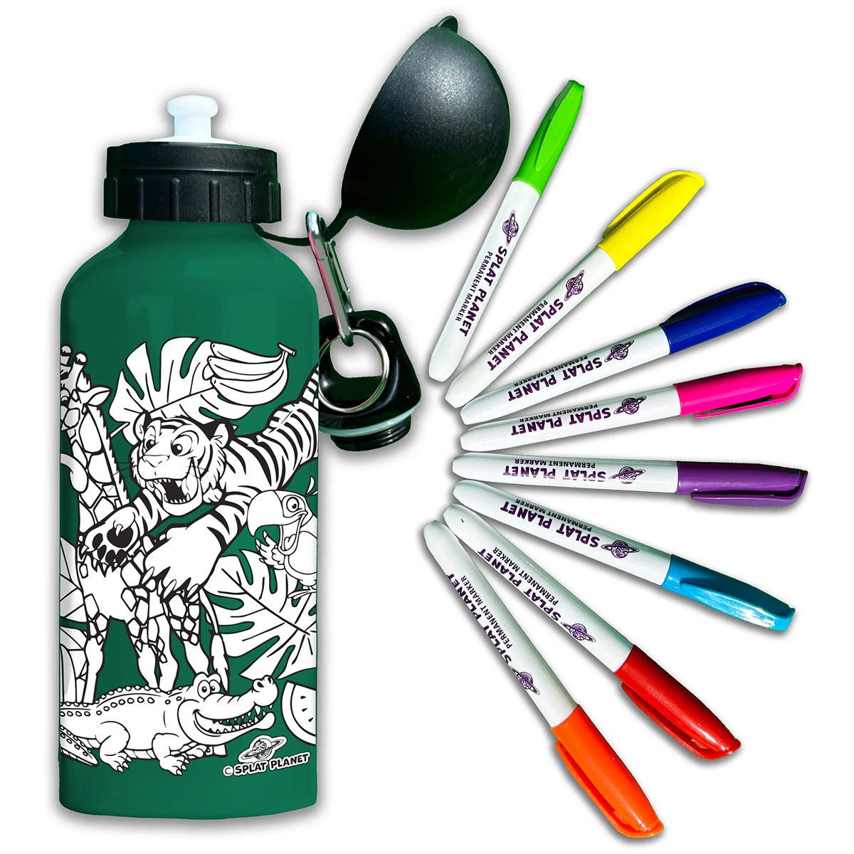 A már jól ismert Splat Planet színezhető pólói után itt a legújabb őrület!!! Színezhető kulacsok gyerekeknek!!! A kulacsok több jópofa mintában kaphatóak amit a gyerekek színezhetnek ki, a 8 különböző színű, gyorsan száradó filctollal.