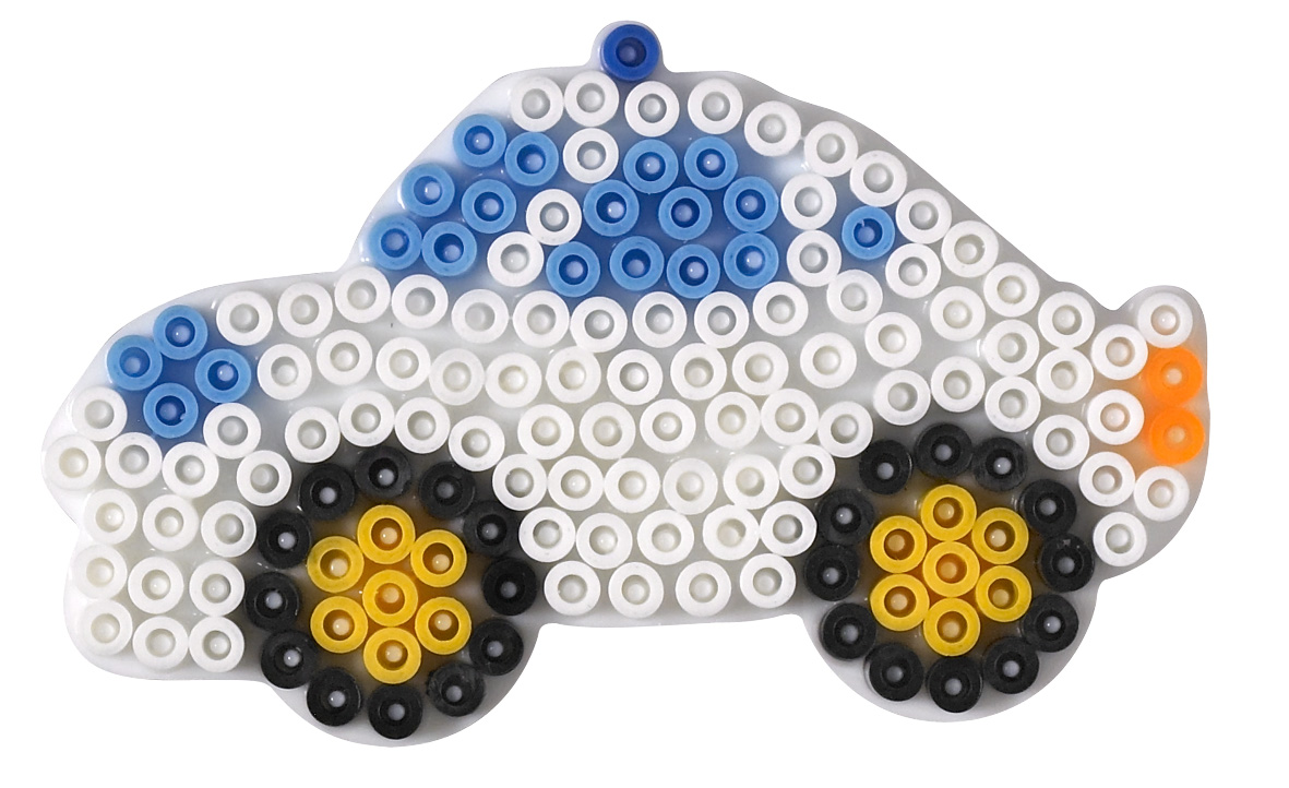 Autó alakú, fehér, műanyag kirakólap midi méretű vasalható gyöngyhöz. Mérete: 10x5 cm.