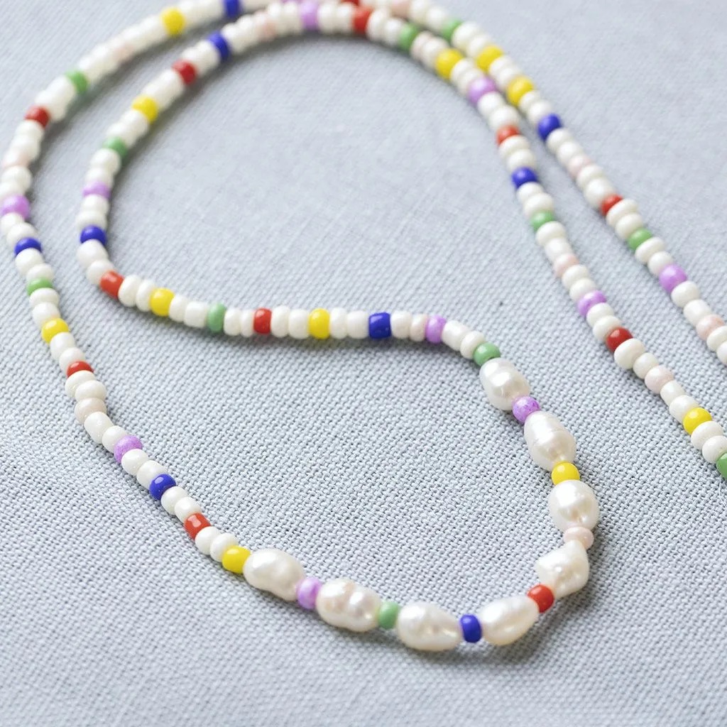 Vidám színes nyaklánc tenyésztett gyöngyökkel ékszerkészítő csomag