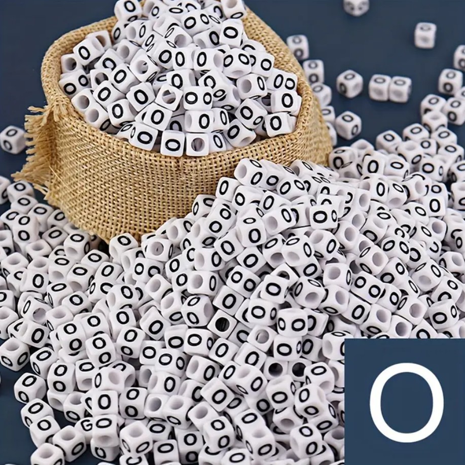 Műanyag kocka betűgyöngy 7x7mm "O"