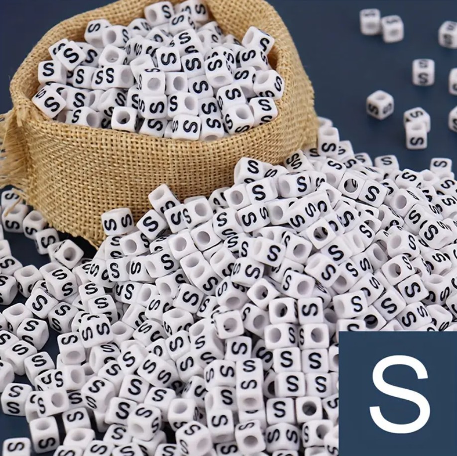 Műanyag kocka betűgyöngy 7x7mm "S"