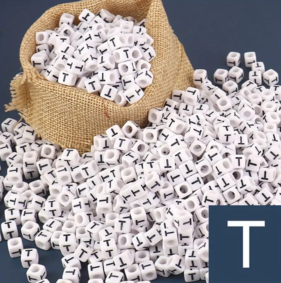 Műanyag kocka betűgyöngy 7x7mm "T"