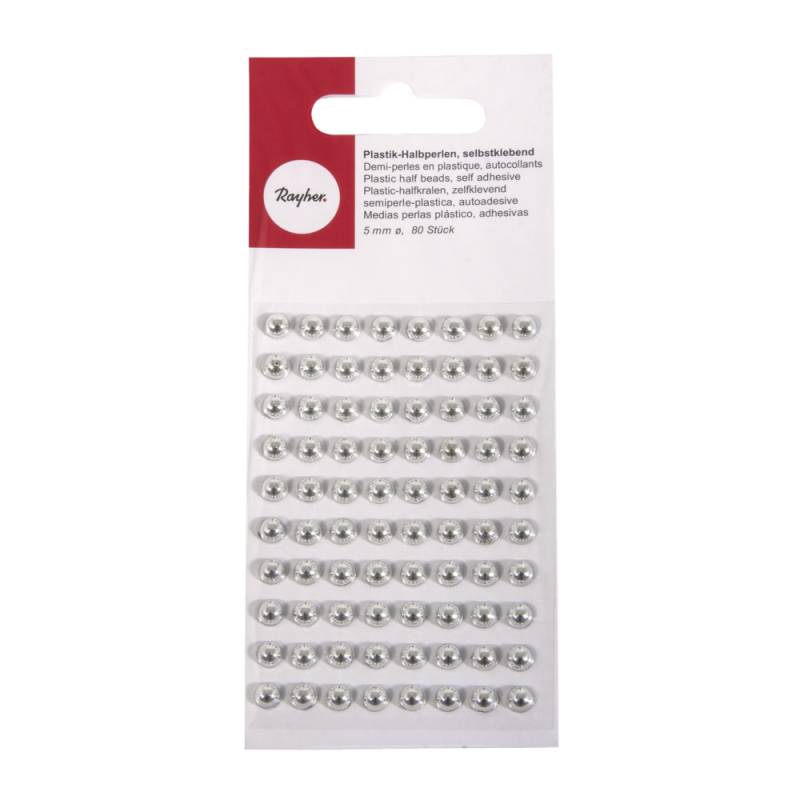 Műanyag öntapadós félgyöngy 5mm, 80 db EZÜST