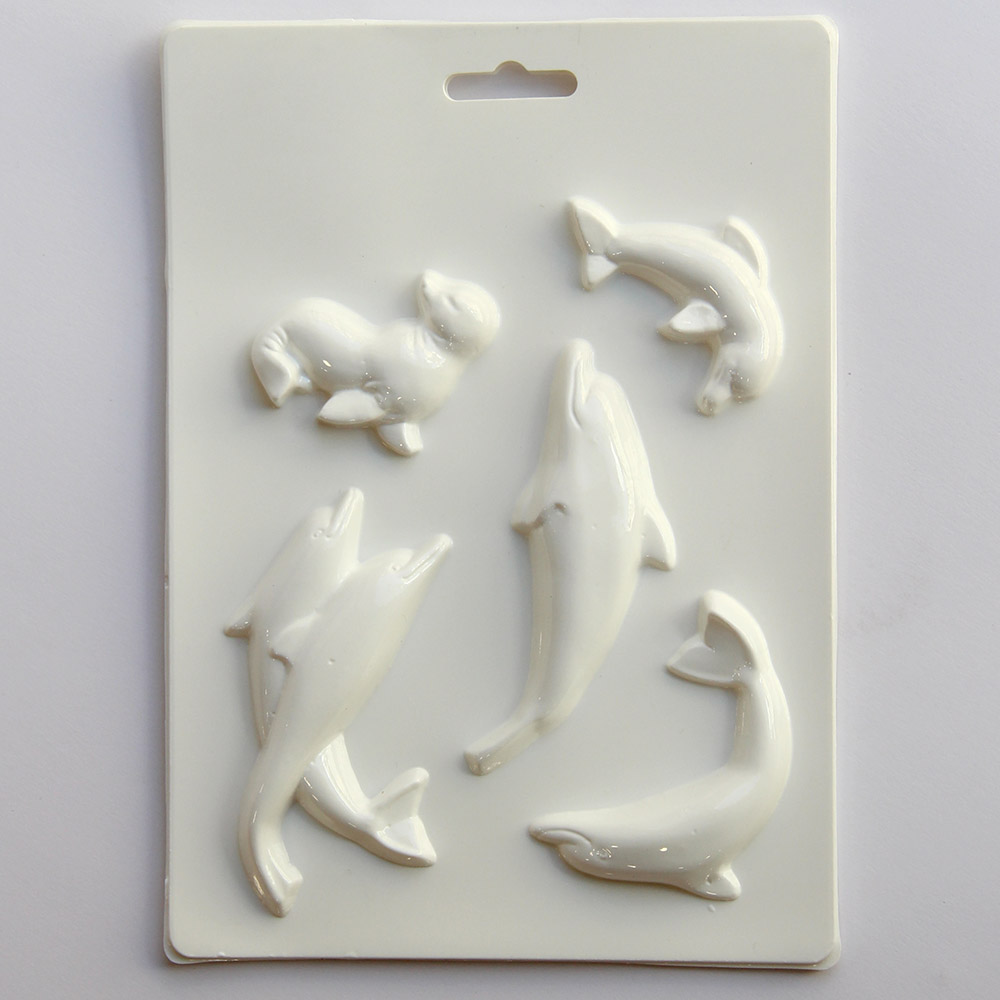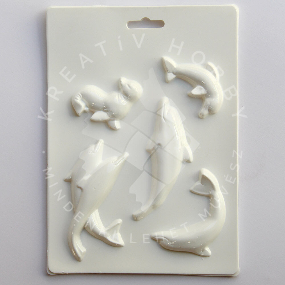 A formából 4 db különböző delfin, és 1 db fóka önthető ki.