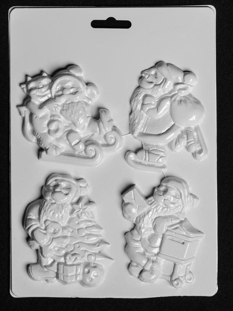A formából 4 db különböző télapó önthető ki (Télapó krampusszal, korcsolyázó télapó, télapó karácsonyfával, télapó postaládával)
