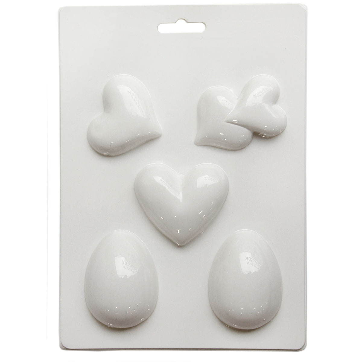 A formából 3 db szív és 2 db tojás forma önthető ki.