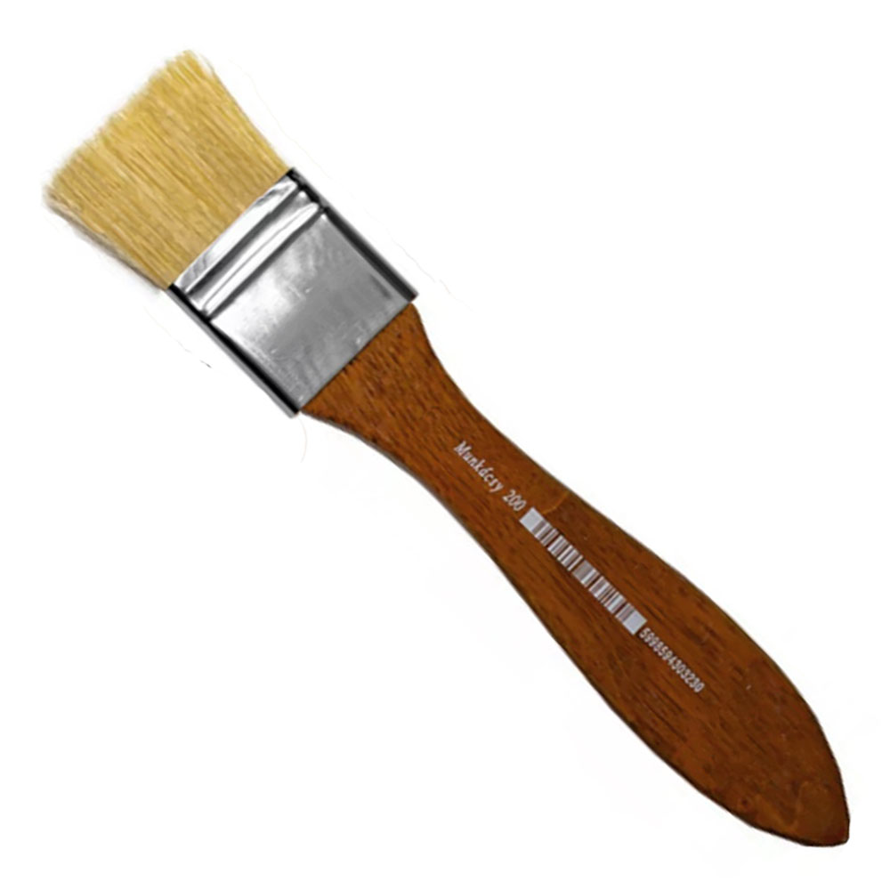 Lapos, közepesen durva sörte ecset, lakkozott fa nyéllel