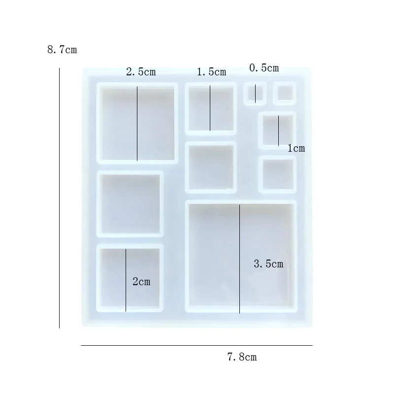 A formából 10 db négyzet önthető ki, 6 különböző méretben