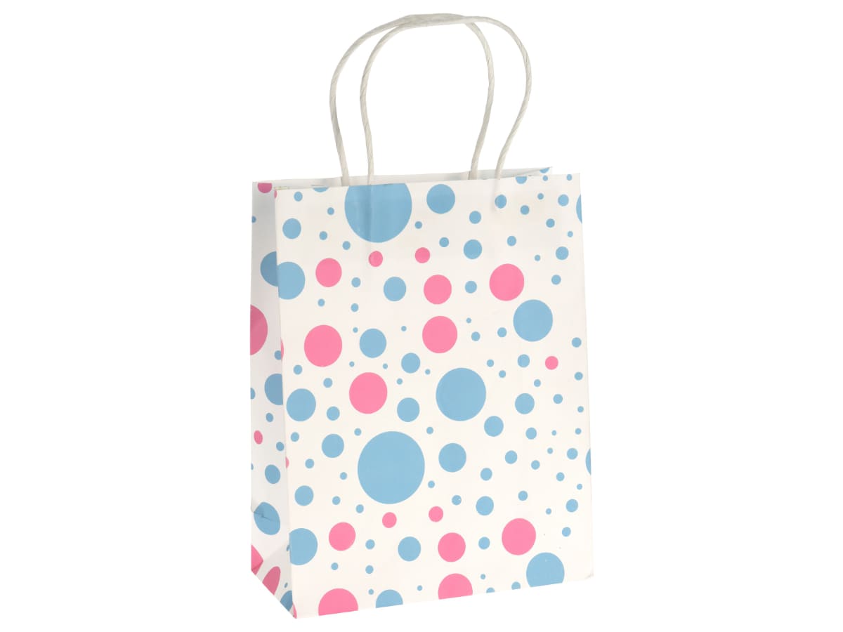 Papír ajándéktasak - kék és rózsaszín pöttyös 23 x 18cm