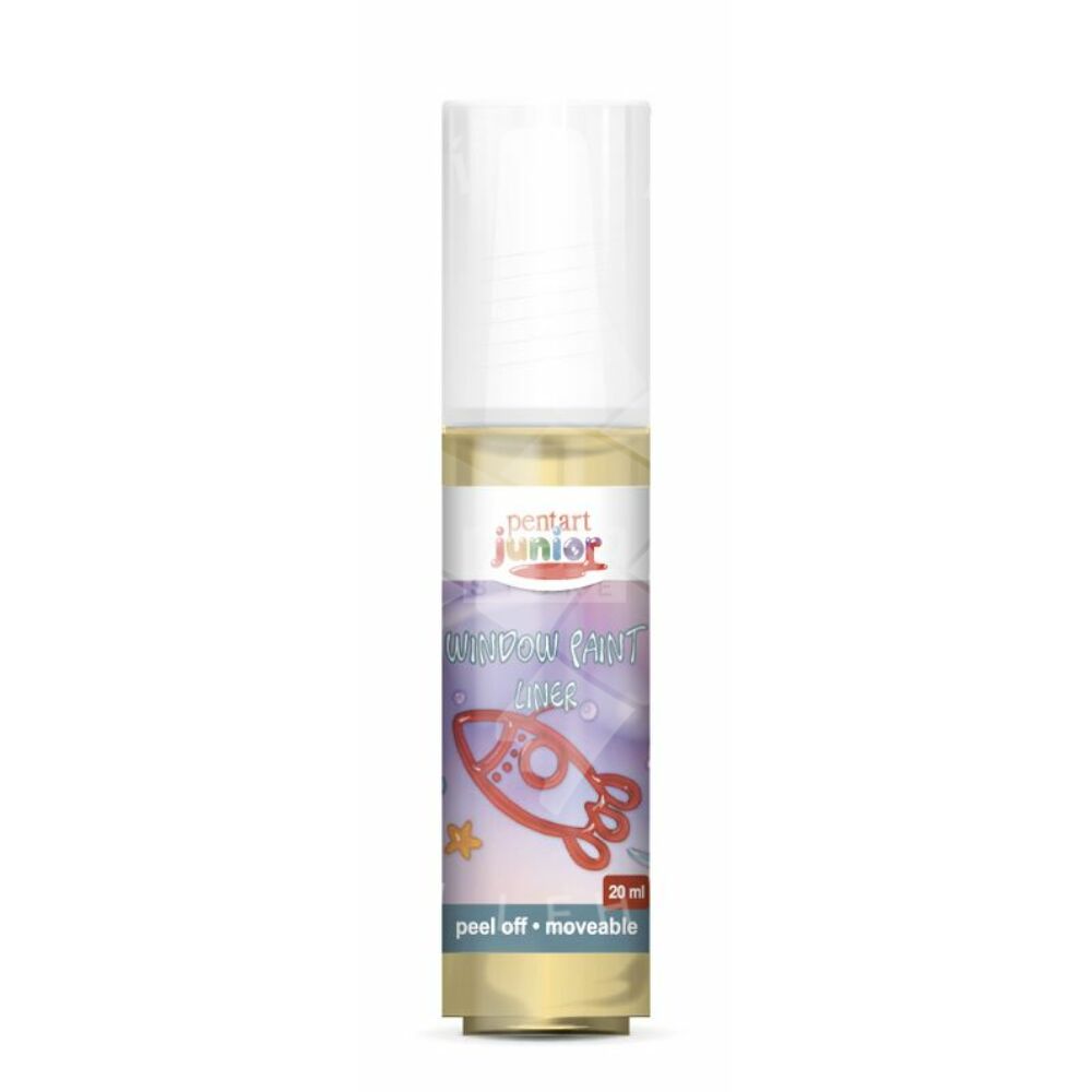 A Pentart Junior lehúzható üvegfestékekkel ablakra, tükörre vagy más sima felületre készíthetünk alkalmi dekorációkat, melyeket később könnyen eltávolíthatunk onnan. Kétféle kiszerelésben (20ml és 80ml), ötféle kontúrszínben és 13 féle kitöltő színben kapható.