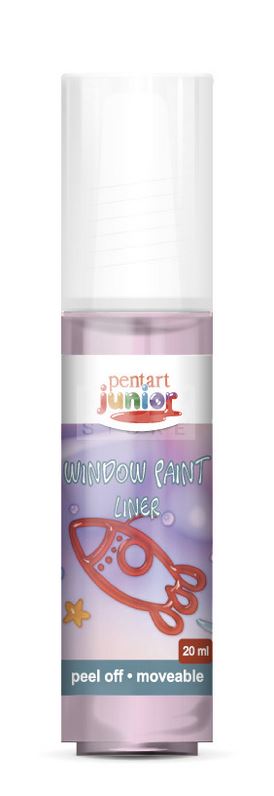 A Pentart Junior lehúzható üvegfestékekkel ablakra, tükörre vagy más sima felületre készíthetünk alkalmi dekorációkat, melyeket később könnyen eltávolíthatunk onnan. Kétféle kiszerelésben (20ml és 80ml), ötféle kontúrszínben és 13 féle kitöltő színben kapható.