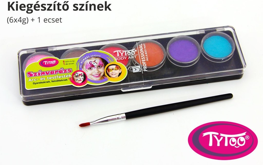 Praktikus, lezárható palettában helyezkednek el a színek, melyeket tetszés szerint sorrendbe pakolhatod, vagy ki is veheted a dobozból, ha úgy kényelmesebb használni. A benne található ecsettel is könnyen felveheted a színeket, vagy szivaccsal is felviheted a bőrre