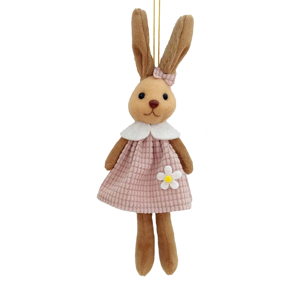 Textil nyuszilány, rózsaszín ruhában 15cm