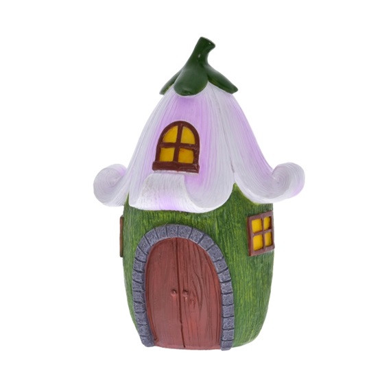 Házikó fatörzsben virágokkal világítós poly 8x6,7x12,7cm barna,sárga