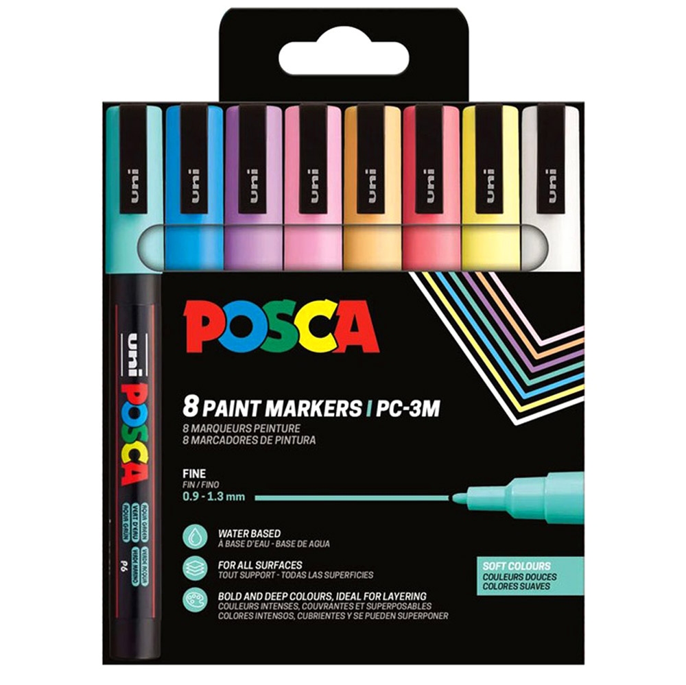UNI POSCA akrilfilctoll készlet, PC-3M 8db LÁGY SZÍNEK