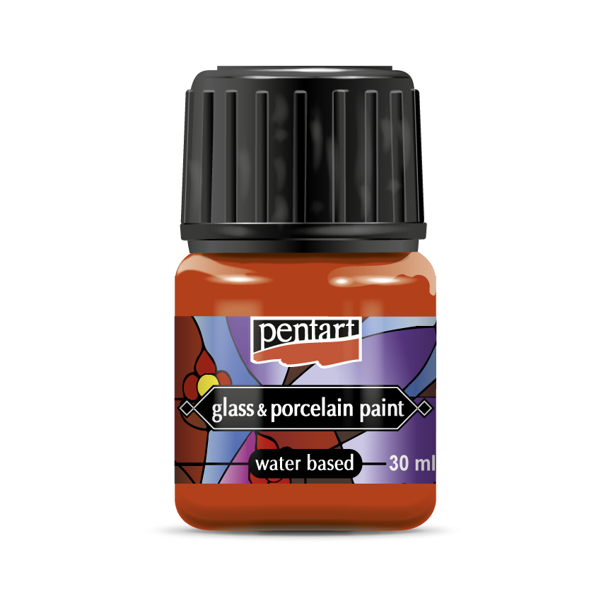 Fényes, átlátszó vagy fedő, vízbázisú festék üveg-, porcelán- és fémfelületek díszítéséhez. A színek egymással jól keverhetők, világosításukhoz Pentart üveg&porcelánfesték médiumot használjunk. Ügyeljünk arra, hogy a díszítendő felület zsír- és pormentes legyen. Fényes, vízbázisú festék üveg-, porcelán- és fémfelületek díszítéséhez. Száradás (1 nap) és kisütés (100 oC , 30 perc) vagy mikrozás (700W, 10 perc) után mosogatható.