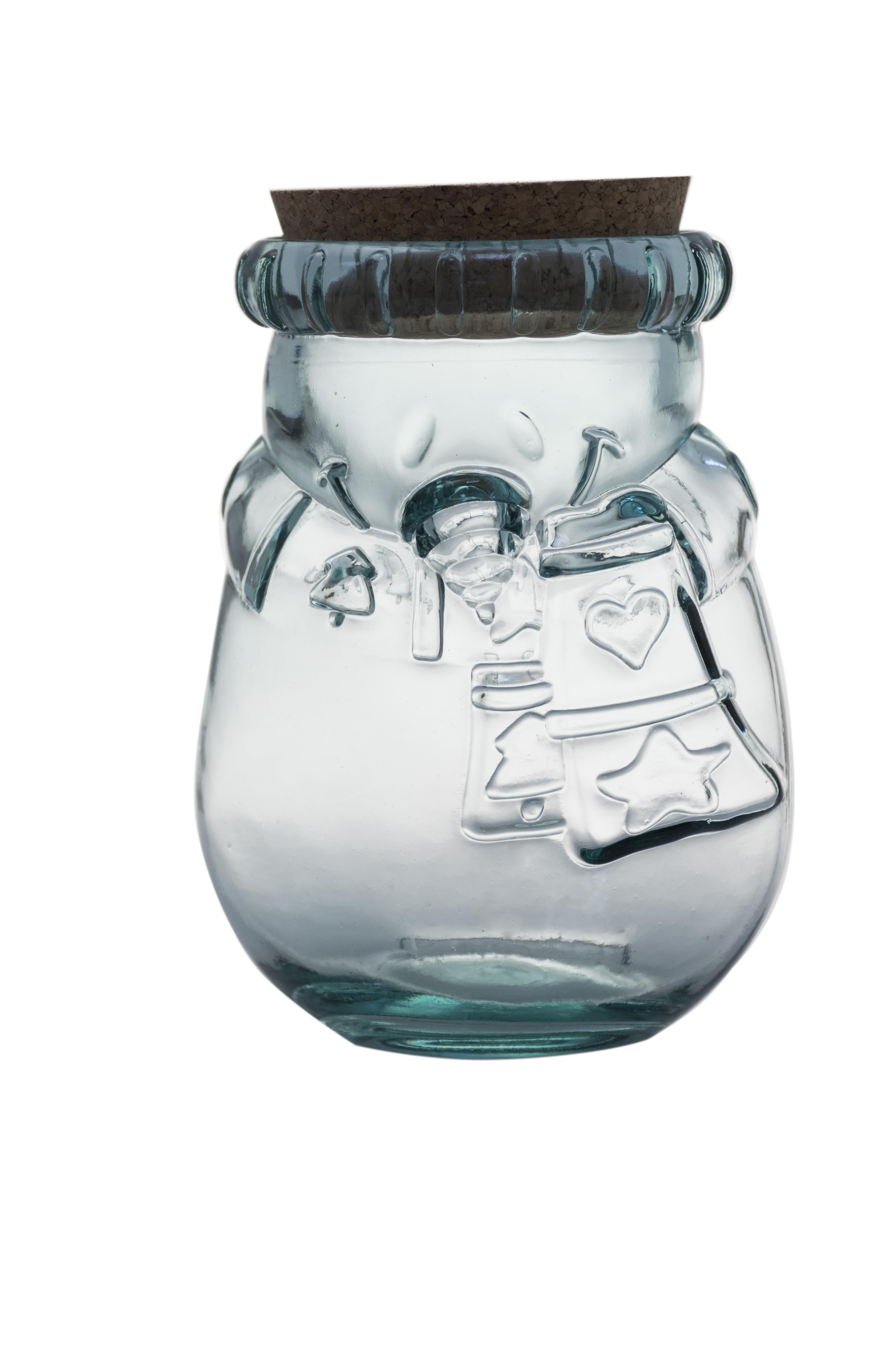 Hóember alakú üveg tároló parafatetővel